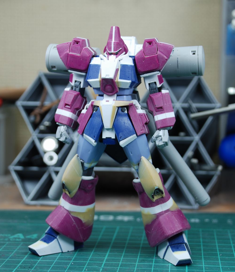 最初は意外性を狙って高機動型ガルバルディβみたくティターンズブルーにしようと思ってましたが各所から「青はありえない!」