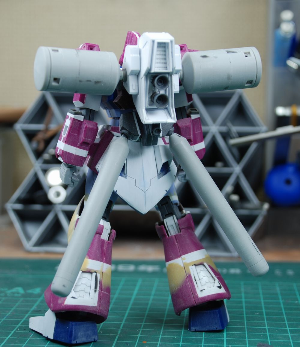 追加バックパックはプラ板スクラッチ。側面のブースターポッド?とプロペラントタンクはWAVEのディティールアップパーツ